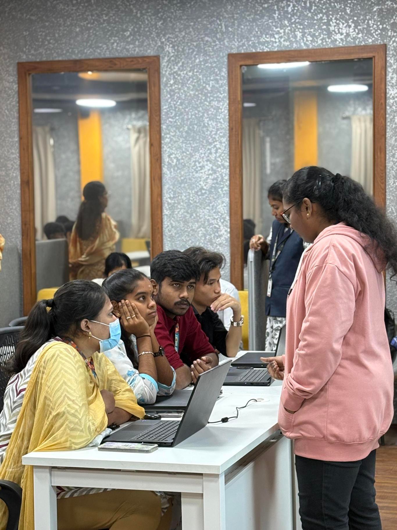 Industry professionals interact directly with students, sharing real-world insights, career guidance, and exposure to current market demands.